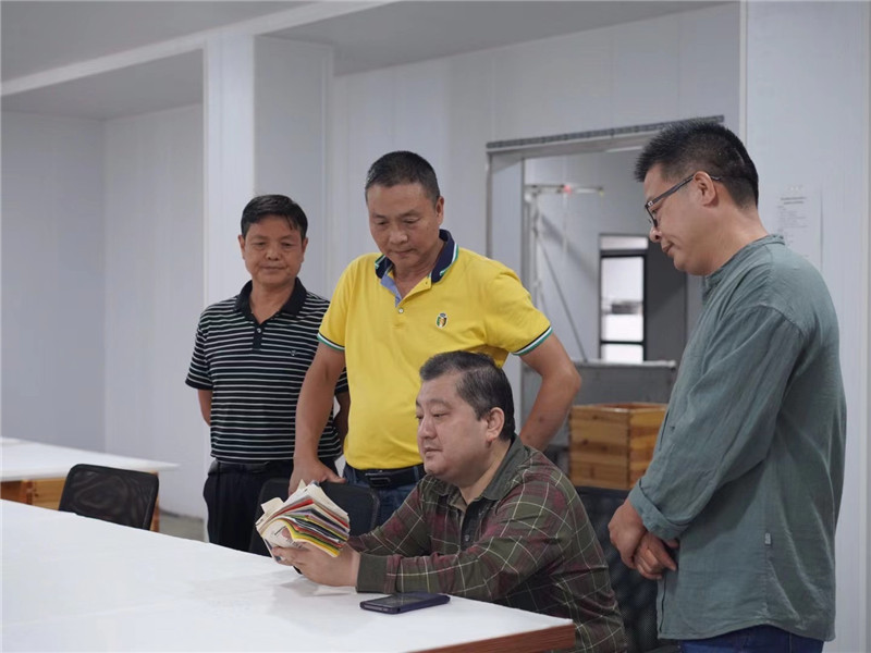 休寧縣書法協(xié)會(huì)主席胡社文陪同安徽省青年書法家協(xié)會(huì)主席王亞洲等藝術(shù)家到公司指導(dǎo)